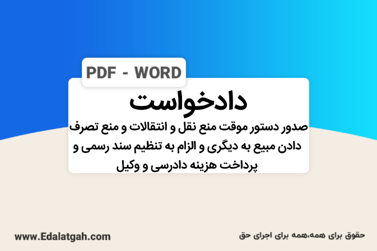 دادخواست صدور دستور موقت منع نقل و انتقالات و منع تصرف دادن مبیع به دیگری